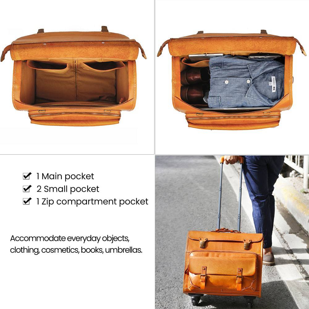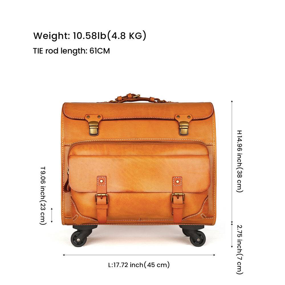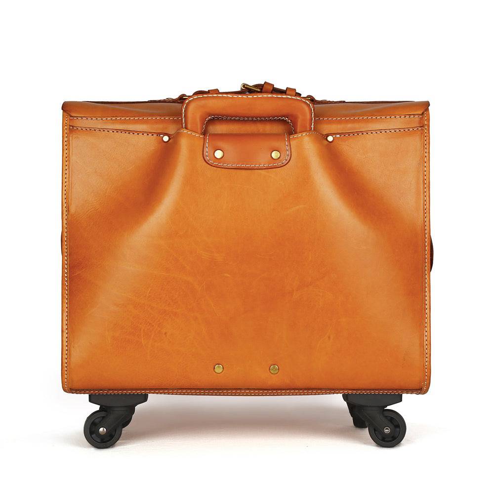 20" Vali Kéo Da Thuộc Thảo Mộc Cổ Điển Vintage, Vali Bánh Xe Xoay Đa Chiều Da Thuộc Thảo Mộc Cổ Điển Màu Lạc Đà
