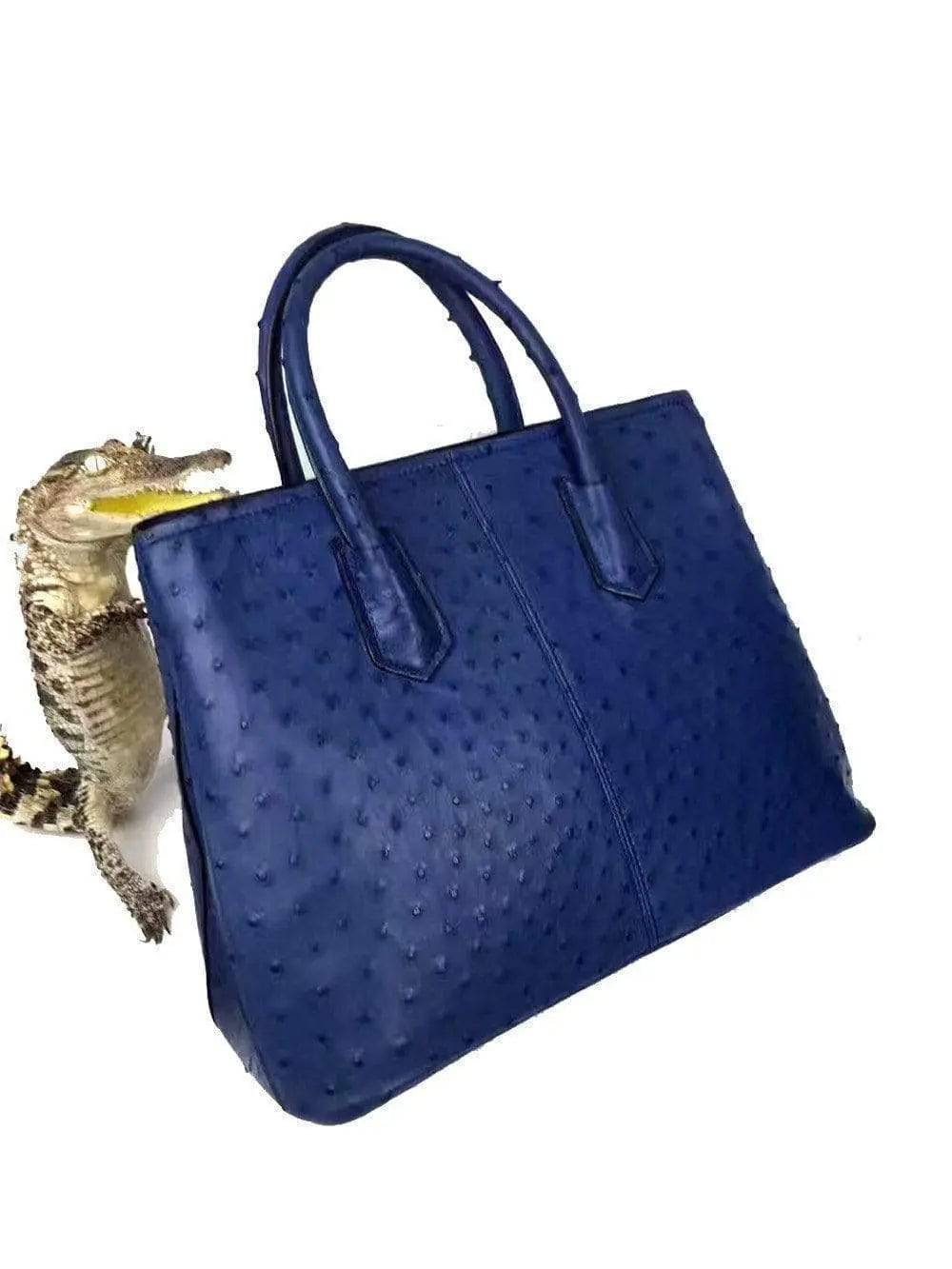 Túi xách lớn da đà điểu màu xanh Rossie Viren cho phụ nữ 38cm