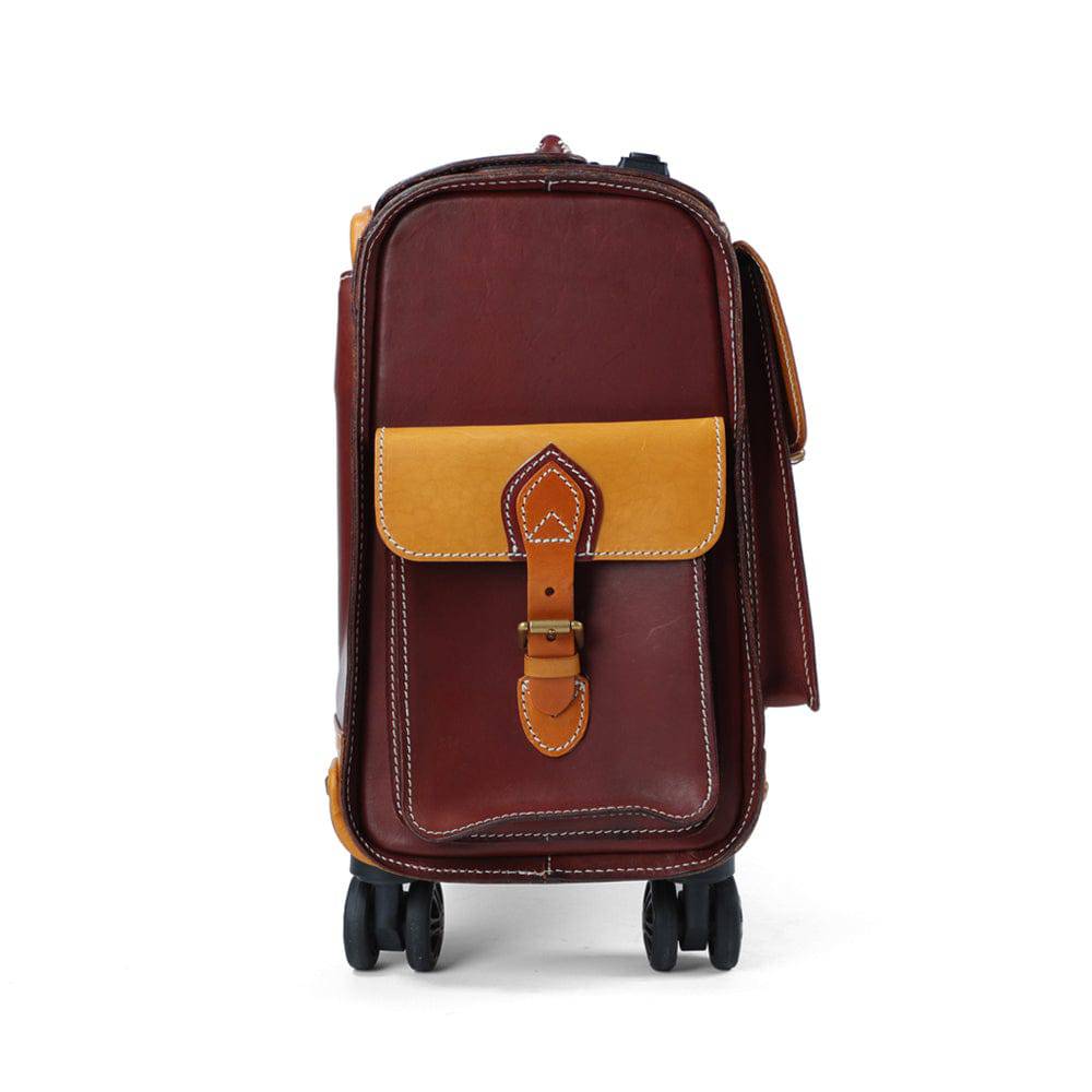 Name:Unisex 23" Genuine Vegetable Tanned Leather Rolling Duffle Bag Trolley Wheeled Carry On Luggage Suitcase Tote