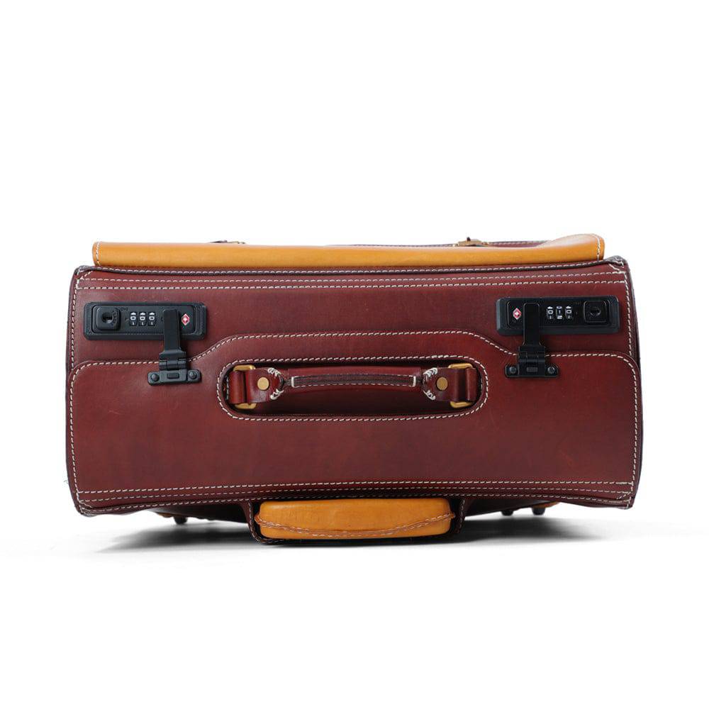 Genuine imported Italian vegetable tanned Leather Business Duffel Travel Trolley Bag 360 Degrees Freely Rotate Mute Universal Wheel ,With TAS Knock ,Large Capacity.